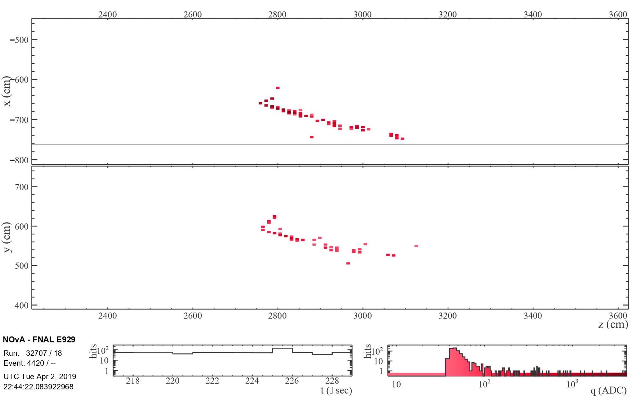 NOvA 遠探測器中電子中微子相互作用的圖像。圖片來源:NOVA 合作