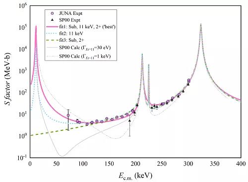 JUNA項(xiàng)目子課題負(fù)責(zé)人北京師范大學(xué)何建軍教授帶領(lǐng)科研團(tuán)隊(duì)經(jīng)過(guò)幾年的艱苦攻關(guān),成功研制出目前耐輻照能力最強(qiáng)的19F注入靶,并邁進(jìn)地面實(shí)驗(yàn),積累了大量關(guān)鍵實(shí)驗(yàn)技術(shù)和經(jīng)驗(yàn);于2021年初,利用錦屏加速器提供的強(qiáng)流質(zhì)子束,成功將該反應(yīng)從之前的198 keV一直向下推進(jìn)至72.4keV能量點(diǎn)(目前深地條件下的極限),首次在AGB星感興趣的伽莫夫能區(qū)獲得了實(shí)驗(yàn)數(shù)據(jù)。