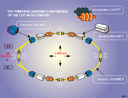 美國費(fèi)米實(shí)驗(yàn)室的質(zhì)子和反質(zhì)子加速器,它的環(huán)形軌道周長6.26公里,它是在一個方向上的真空管道中加速粒子,在相反的方向上的真空管道中加速反粒子。