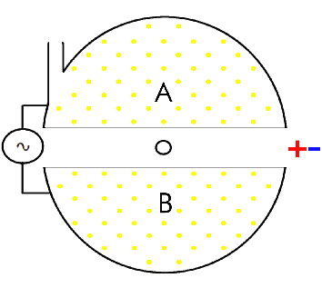 那如何給帶電粒子提速呢?這很簡單,因?yàn)樗鼛щ姡晕覀冎恍枰o他提供一個電場就可以了,那電場又怎么來?也很簡單,現(xiàn)在你把兩個平行的金屬板接到一個正負(fù)極上,也就是給他施加一個電壓,那么在金屬板之間就會創(chuàng)造一個均勻的電場。