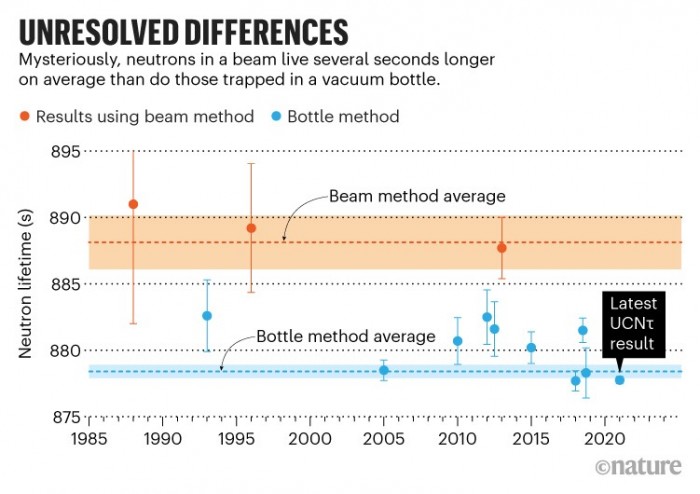位于俄羅斯Gatchina的彼得堡核物理研究所的Anatolii Serebrov指出,UCNτ的最新測量并沒有幫助彌合這一差距。“即使考慮到這個新的結果,差異仍幾乎沒有改變。”他曾在2005年領導了一個高精度的瓶子實驗并首次指出了一個可能的差異。