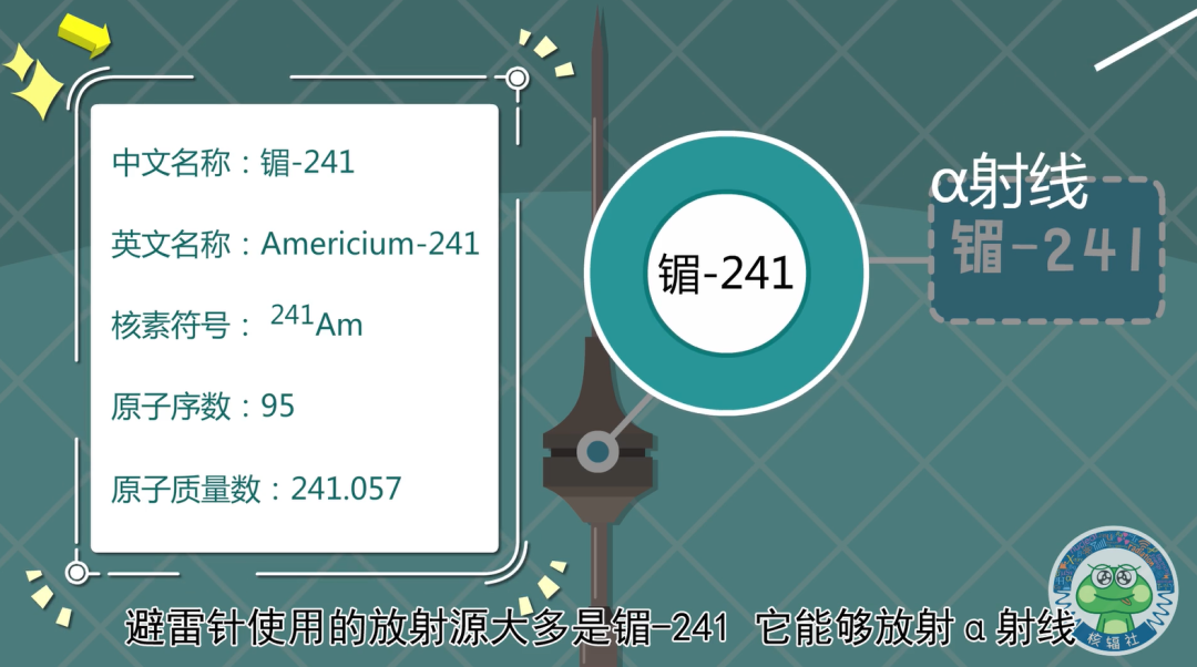 放射性避雷針是利用放射性物質使周圍的空氣大量電離,使更遠云層上的電子被吸引過來,從而達到提高避雷針能效的目的。放射性避雷針產生的電離電流比普通避雷針高很多,它能及早放電,使保護區內無閃電產生。用在避雷針上的放射源大多是镅-241,它放射α射線,有很強的電離能力。镅-241的半衰期為432.6年,一次裝上后,可以使用一二百年。而且其發射的射線作用距離很短,對建筑物下面的人沒有危害,非常安全。雷電頻繁的意大利和西班牙半島上,許多易受雷電影響的建筑,如無線電發射臺、變電站、燃料油或天然氣貯存庫、軍工廠、核工廠等都安裝了放射性避雷針。