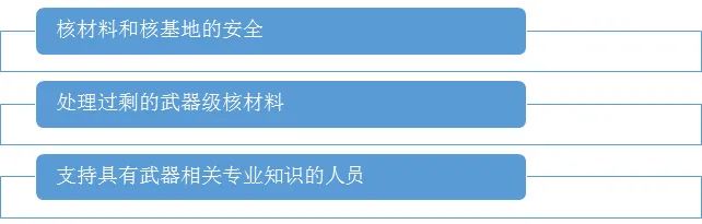合作處置、停止生產和限制使用過剩的武器級材料旨在減少可用于核爆炸裝置的核材料量、處理這些核材料的基地數量,并消除材料生產能力。這方面的合作努力包括: