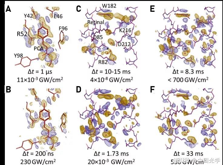 圖4:基于差分傅里葉電子密度圖得到蛋白質空間構型的演化圖像 (圖源:Science 373, 980 (2021))