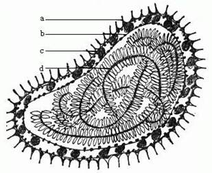 a. 套膜上的釘芒具有唾液酸蒼酶和血球凝集活動;