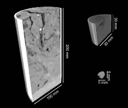 土壤結構研究中應用的CT主要包括醫用CT、工業顯微CT和同步輻射顯微CT,三種CT的主要原理如下圖所示。其中,同步輻射顯微CT采用單色光源;而醫用CT和工業CT采用多色光源,會產生射線硬化偽影,需要通過加濾波器等方法消除。醫用CT可掃描樣品尺寸大,分辨率低,主要用于大土柱的研究;同步輻射顯微CT分辨率高,圖像對比度強,但可掃描樣品尺寸小,主要用于團聚體尺度的研究;而普通工業CT的分辨率和掃描樣品尺度則介于二者之間。結合利用不同類型CT,研究多尺度土壤結構特征。