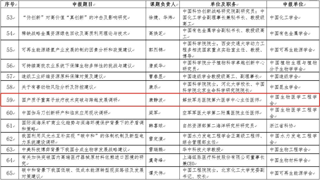 5月30日,中國科協第十次全國代表大會在人民大會堂舉行閉幕式。閉幕式上,大會向全國科技工作者發出開展“自立自強 創新爭先”行動的倡議,并開展“中國科協十大代表2021年調研課題專項資助活動”。精放分會康靜波主委團隊獲批《國產質子重離子放療技術突破與跨越發展調研》專項課題資助,這是科協十大以來,從國家層面對國內質子重離子放療相關技術發展與臨床應用的首次全面調研摸底。