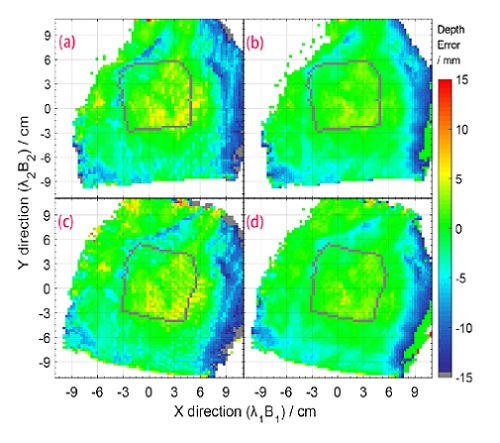 程競儀帶領(lǐng)團(tuán)隊(duì)利用PET/CT設(shè)備采集質(zhì)子射線引發(fā)的感生放射性,在標(biāo)準(zhǔn)模體上建立并優(yōu)化了基于質(zhì)子重離子醫(yī)院筆形掃描束物理參數(shù)的量化評估方法——PET-RV,并在國內(nèi)率先對14例乳腺癌患者保乳術(shù)后在院接受質(zhì)子放療的精準(zhǔn)性進(jìn)行了驗(yàn)證,結(jié)果顯示醫(yī)院質(zhì)子放療的照射誤差僅為3毫米,從而通過生物體驗(yàn)證了醫(yī)院粒子放療的精準(zhǔn)性。研究團(tuán)隊(duì)還采用射野方向觀視(BEV)技術(shù),開創(chuàng)性地將整個(gè)射野區(qū)域的照射誤差值可視化并以色階顯示,更加直觀地呈現(xiàn)了放療的精準(zhǔn)度。