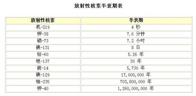 半衰期越長,表明這個放射源活度變化得越慢,如土壤石材中通常含有的天然放射性核素238U、232Th等,半衰期越短,表明這個放射源的活度變化得越快,如大多人工放射性核素,相對而言半衰期較短。每種放射性核素都有一個特有的半衰期,其范圍從幾百萬分之一秒到幾十億年。
