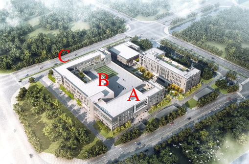 懷柔科學城激光加速創新中心項目由北京建工集團承建,其坐落于北京市懷柔區北房鎮西宰路,占地面積近30000平米,北鄰燕山,西接雁棲湖,與中國科學院大學毗鄰,周邊景色壯麗。北京激光加速創新中心整體規劃上共分成三個主要區域,如下面的鳥瞰圖所示,從右下向左上依次為A區(辦公區域);B區(實驗區域);C區(設備間)。位于中心中部的實驗區又分為PW激光室、國產200TW激光室、治療室和光源實驗室四個子區。