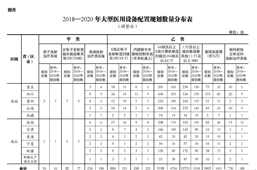 2019年7月末,國家衛健委發布消息,決定對2018—2020年大型醫用設備配置規劃進行調整。