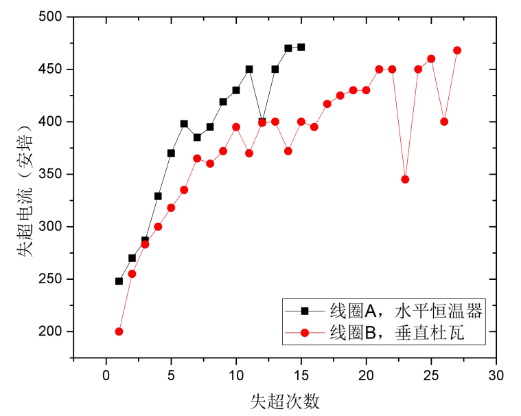 波蕩器樣件在水平與垂直狀態下勵磁電流均達到470A以上,7mm磁間隙下峰值磁場強度最高達到1.01T,在100A-470A不同的勵磁電流下相位誤差控制在4-10度范圍內,橫向范圍+/- 12mm內一次積分變化小于100Gscm,達到了先進光源的性能要求。根據水平恒溫器與垂直杜瓦的測試內容和結果,課題組掌握了超導波蕩器線圈繞制、高精度裝配與準直、小間隙磁場測量、失超保護、超導波蕩器低溫技術、超導電源等一系列關鍵技術。另外,研制成功適用于超導波蕩器的低溫恒溫器,實現液氦零揮發、虹吸循環、真空盒冷卻等關鍵技術,并在磁鐵降溫、引線冷卻、接頭溫控和失超恢復等方面積累重要經驗。