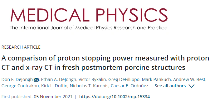 研究團(tuán)隊(duì)還指出,質(zhì)子CT提供的成像劑量(豬的頭部為0.2~0.7 mGy)遠(yuǎn)低于X射線CT(用于低劑量和高劑量掃描的劑量為3.9 mGy和39 mGy)。雖然單次掃描帶來的小輻射劑量不太可能造成危害。但研究人員指出,質(zhì)子CT所賦予的劑量減少10到100倍意味著可以定期重復(fù)此類掃描。