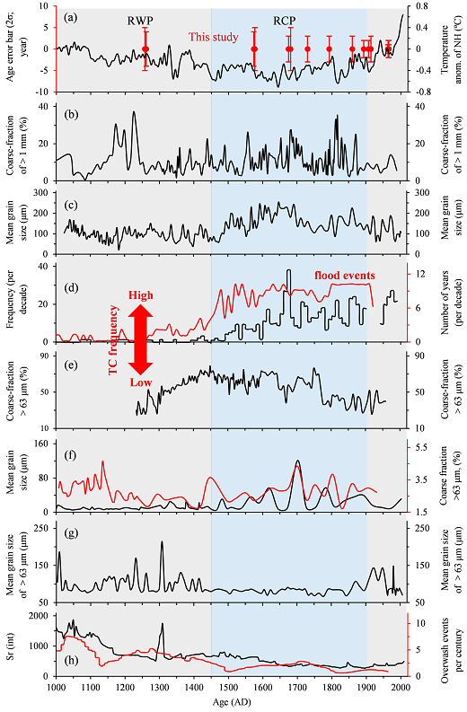 圖3. 過去千年西北太平洋地區風暴活動記錄