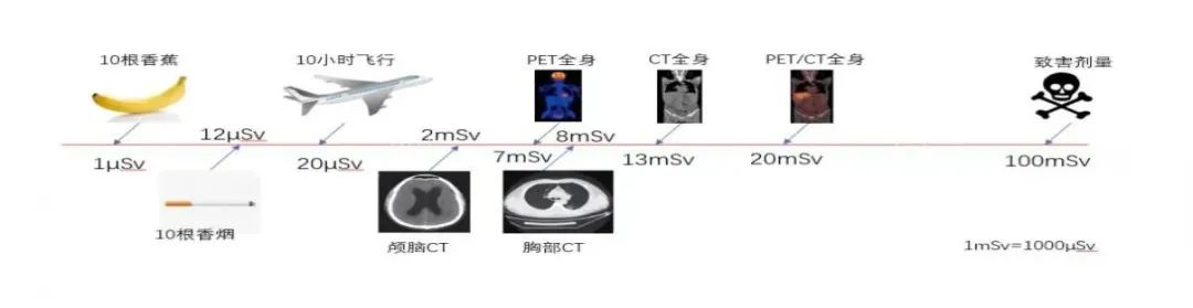 輻射并不一定意味著會(huì)對(duì)人體產(chǎn)生傷害,醫(yī)學(xué)上常采用“有效劑量”來評(píng)價(jià)輻射劑量,常用單位為毫希沃特(mSv)。核醫(yī)學(xué)檢查主要包括SPECT/CT、PET/CT等。SPECT/CT檢查平均輻射劑量較低[1],為方便大家理解,和天然射線、CT檢查的射線進(jìn)行一下對(duì)比。