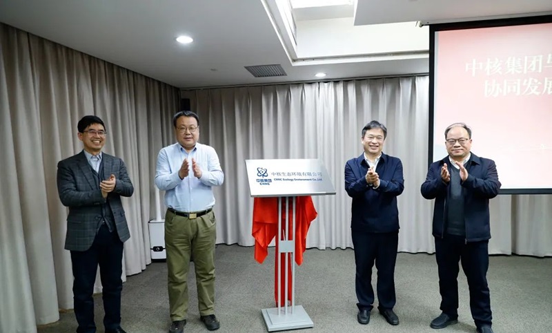 中核集團黨組成員、副總經理申彥鋒,連云港市委常委、常務副市長、黨組副書記楊新忠,共同為中核生態環境有限公司揭牌。
