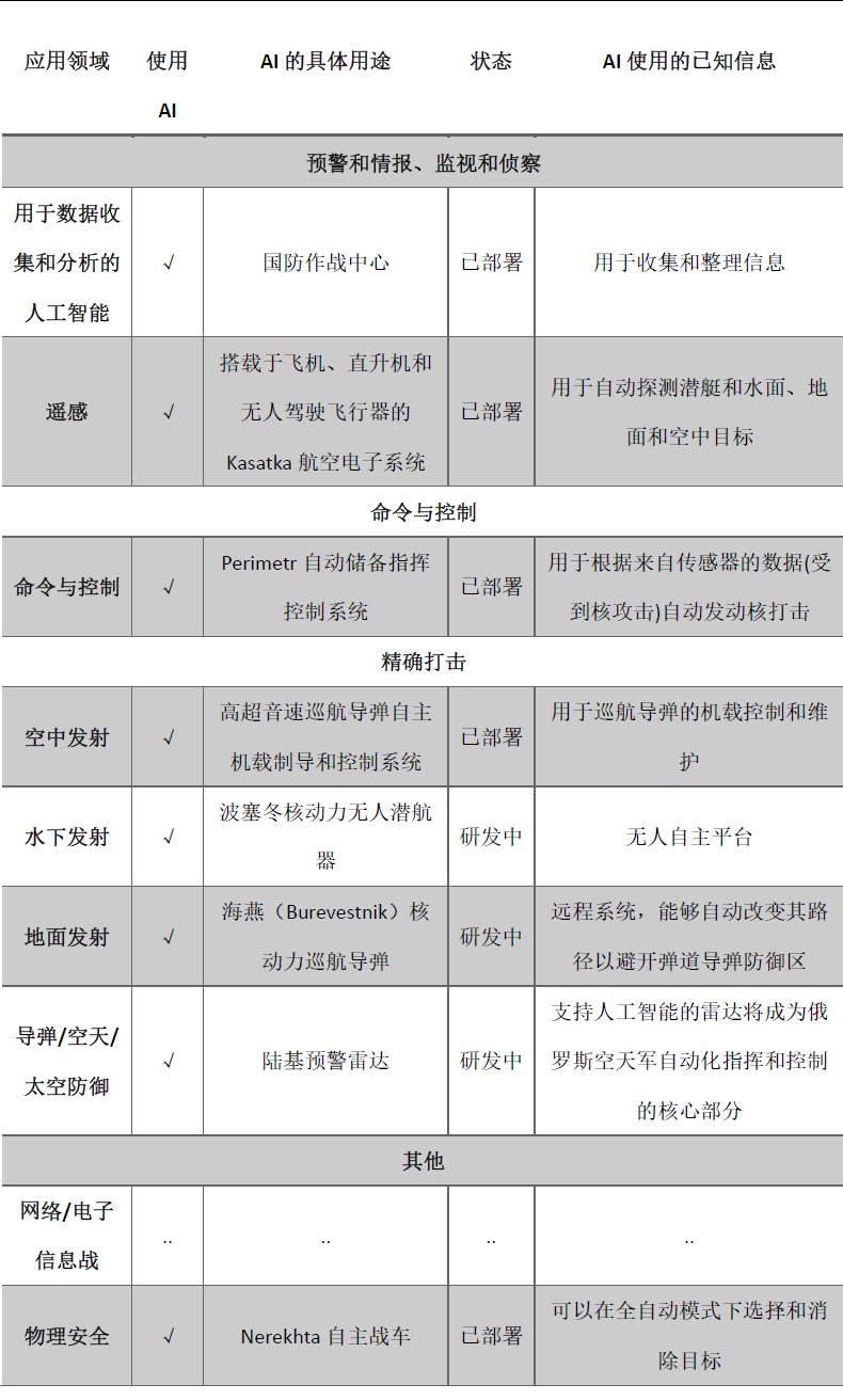 圖表:俄羅斯核威懾體系中人工智能的應用情況
