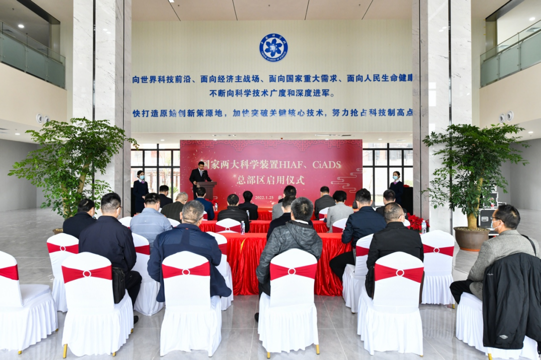 儀式由胡正國主持,徐瑚珊首先介紹了國家兩大科學(xué)裝置HIAF、CiADS及總部區(qū)項目概況,并對廣東省、惠州市給予的支持表示衷心感謝。溫金榮在講話中希望國家兩大科學(xué)裝置加緊建設(shè),早日為國家科學(xué)事業(yè)和地方經(jīng)濟(jì)建設(shè)作出貢獻(xiàn)。劉吉代表惠州市將園區(qū)“鑰匙”移交給徐瑚珊,標(biāo)志著惠州市圓滿完成總部園區(qū)“交鑰匙”工程建設(shè)。最后,劉吉、溫金榮、李俊玲、肖國青、徐瑚珊、夏佳文等領(lǐng)導(dǎo)共同為中國科學(xué)院近代物理研究所惠州研究部揭牌。