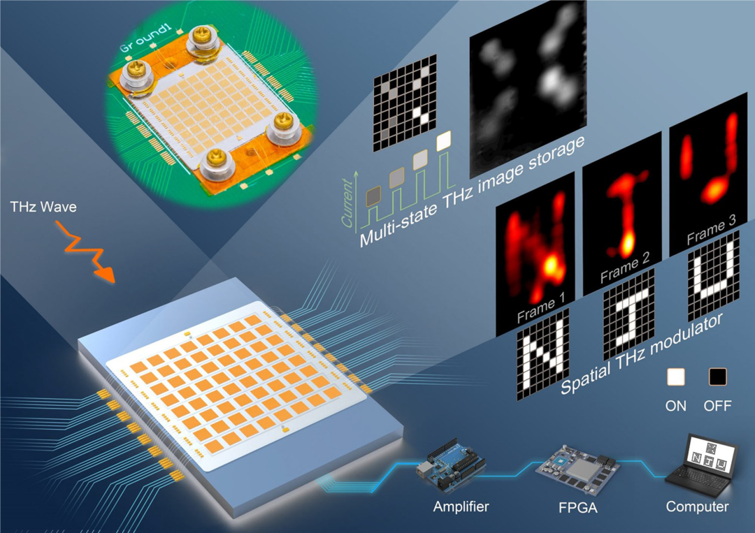 南京大學超導電子學研究所開發了具有記憶功能的可編程太赫茲超材料。通過優化熱設計,抑制了單元間的熱串擾,實現了像元的獨立控制,調制速度達到1 kHz。通過施加電流脈沖可以實現狀態的寫入、讀取和擦除,并實現了多灰階圖像的寫入和保存。此項研究在高指向性波束賦型、全息成像等方面具有良好的應用前景。