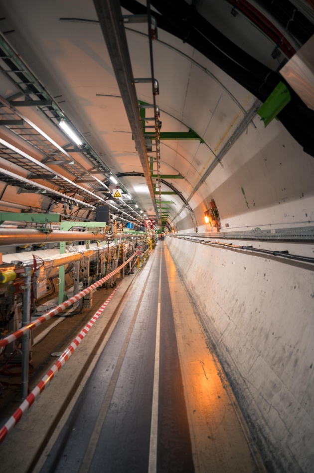 就像我說過的,我是一個理論學家。我并不在LHC工作。2009年7月我去到那里,并且看到了4個巨大的粒子探測器之一,這4個探測器位于環形隧道附近的不同位置,粒子就在這些地方碰撞。我參觀的探測器叫作ATLAS,確實令人印象深刻。如果你回想一下我們昨晚所在的舞廳,想象它向一側傾斜,ATLAS探測器所在的房間就是那樣的。我當時真有一種置身大教堂的感覺。