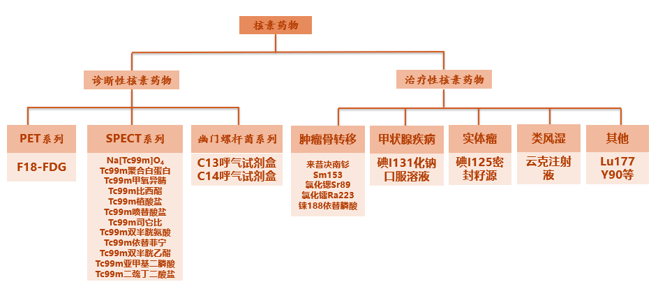 與核醫學應用方式分類相對應,放射性藥物也可細分為診斷用放射性藥物和治療用放射性藥物兩大類。