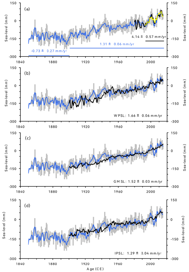 研究認(rèn)為,1850–1950年的南海海平面變化可能是太陽活動(dòng)和溫室氣體共同作用的結(jié)果,而1950年代以來,溫室氣體可能主導(dǎo)著海平面的快速上升。