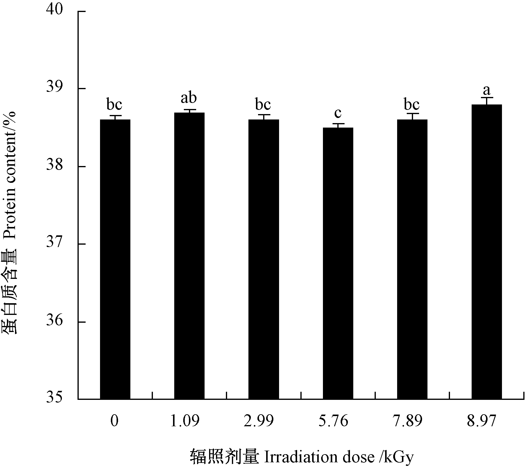 本研究采用電子束對大豆進行輻照處理, 系統地研究大豆蛋白質含量、含油率、氨基酸組成及含量等營養品質的變化規律, 并通過對蛋白質溶解度、尿素酶及酸價、過氧化值的活性的考察, 探討電子束輻照對大豆蛋白質加工特性、抗營養因子活性及油脂品質的影響, 旨在開發大豆的電子束輻照儲藏技術, 為大豆的儲藏提供新工藝。