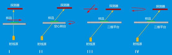 下圖是幾種常見的層析成像結構。如果將有限角CT也稱作CL的話,可以認為是第5種結構。這里我們對各種成像結構的成像能力進行簡單的分析。(I)結構簡單,但數據缺失過于嚴重(掃描的角度等于射線的張角);(II)僅能掃描中心區域;(III)(IV)相似,可以掃描任意區域,但在探測器的運動細節上有差異。其機械實現和數據處理上的差異過于專業,我們在這里就不再展開討論。
