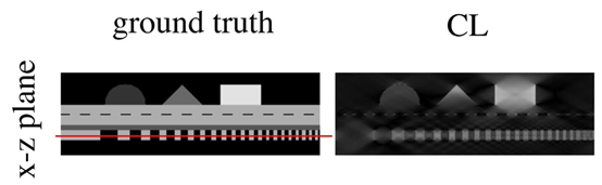 這是CL避免不了的問題。首先通過下圖來了解一下層間混疊是什么樣子。其表現就是橫向的邊緣被弱化了。為什么會出現這個問題呢?這得從傅里葉中心切片定理講起,還是算了吧,簡單點理解就是缺少了橫向穿過物體的射線。為什么會缺少?因為這個方向射線穿不透啊,回憶一下前面一米長的大板。