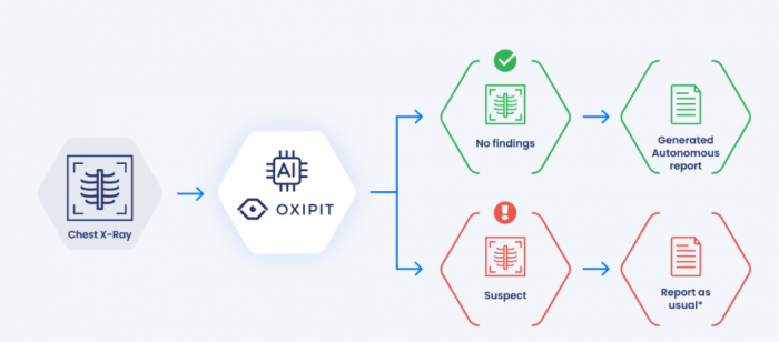 這款名為ChestLink的工具可以掃描胸部X光片,并自動發送它認為完全健康、沒有異常的病人報告。任何被該工具標記為有潛在問題的圖像都會被發送給放射科醫生進行審查。Oxipit公司在信息資料中說,初級保健中的大多數X射線沒有任何問題,因此對這些掃描進行自動化處理可以減少放射科醫生的工作量。