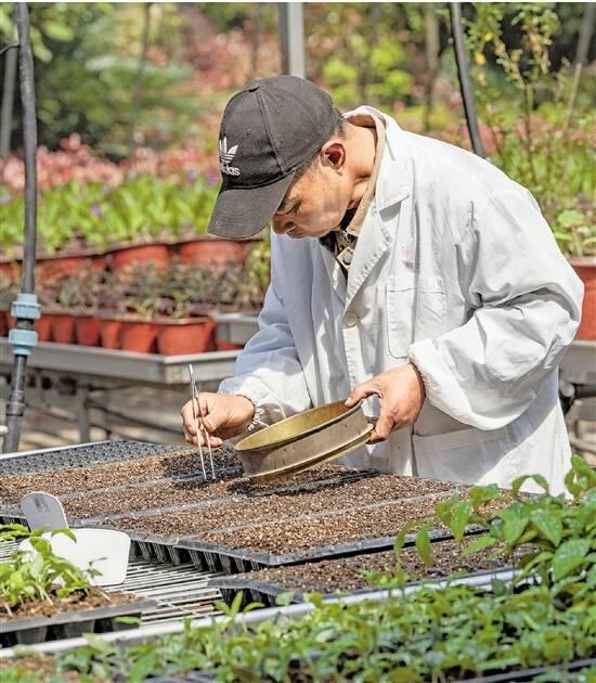 4月6日上午,春風和煦,在江山市遠郊一片新開辟的200多平方米栽培基地里,江山市農業農村局工作人員小心翼翼地從培養箱中捧出一包黃精種子,反復清洗后,用鑷子輕輕地夾起來,一粒一粒放入裝滿基質的穴盆里,再輕輕地蓋上培養土,最后灑上殺菌藥水。大約一年后,這些種子將長成黃精苗,被移栽到田地里。