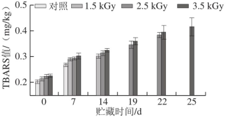 2.6 電子束輻照對冷鮮牛肉TBARS值的影響