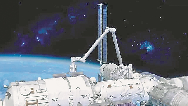 本次安裝任務(wù)的機(jī)械臂懸掛裝置和部分轉(zhuǎn)接件,由哈工大和中科院長(zhǎng)光所聯(lián)合研制機(jī)械臂轉(zhuǎn)接件,能把長(zhǎng)度10米的核心艙機(jī)械臂同長(zhǎng)度5米的實(shí)驗(yàn)艙機(jī)械臂組合起來(lái)。實(shí)現(xiàn)雙臂間電氣和信息的互聯(lián)互通,機(jī)械臂懸掛裝置帶有巧妙的抱爪結(jié)構(gòu),能夠根據(jù)指令自動(dòng)捕獲、鎖緊或釋放轉(zhuǎn)接件,為轉(zhuǎn)接件艙外長(zhǎng)期駐留提供保障。