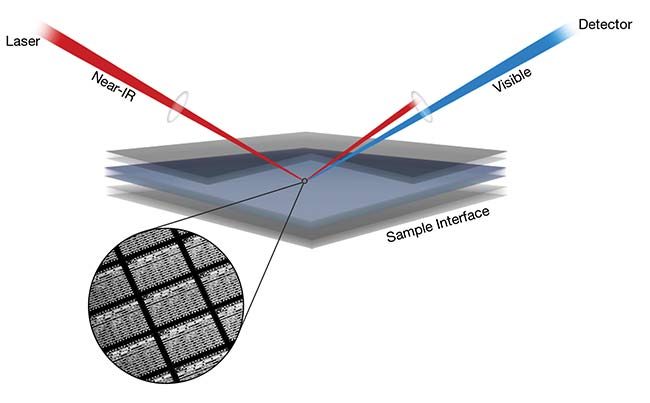 飛秒激光脈沖可以從兩種材料之間的界面或任何非中心對稱的材料中產生少量的二次諧波光。產生的二次諧波光信號可以無損檢測和成像半導體晶圓表面上下的特征,例如結構缺陷、薄膜質量,甚至微量金屬污染。由 FemtoMetrix 提供。