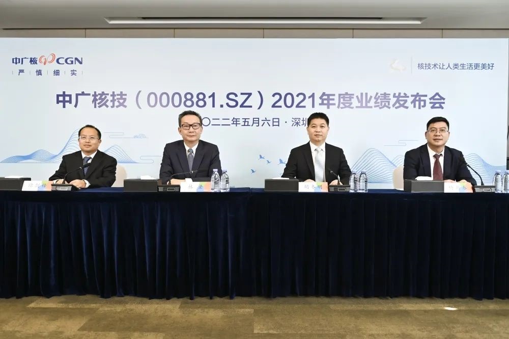 5月6日下午,中廣核核技術發展股份有限公司(以下簡稱“中廣核技”,股票代碼:000881.SZ)在深圳通過網絡直播的形式舉行2021年度業績發布會。公司董事長林堅,黨委書記、董事、總經理胡冬明,總會計師譚劍鋒,董事會秘書楊新春出席發布會。
