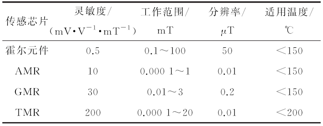 表1 不同磁傳感器技術(shù)參數(shù)對(duì)比